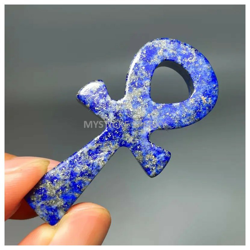 Vstupte do světa starověkých mystérií s tímto ručně vyrobeným amuletem s nilským křížem Ankh, zhotoveným z nádherného přírodního kamene Lapis Lazuli. Každý kus je jedinečný, pečlivě vybroušený a leštěný, aby vynikla sytě modrá barva kamene se zlatavými pyritovými inkluzemi. Tento amulet je víc než jen šperk – je to kousek historie s hlubokým symbolismem.