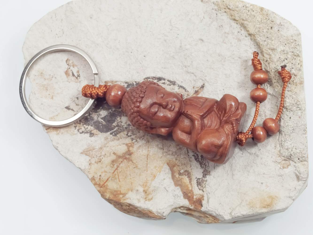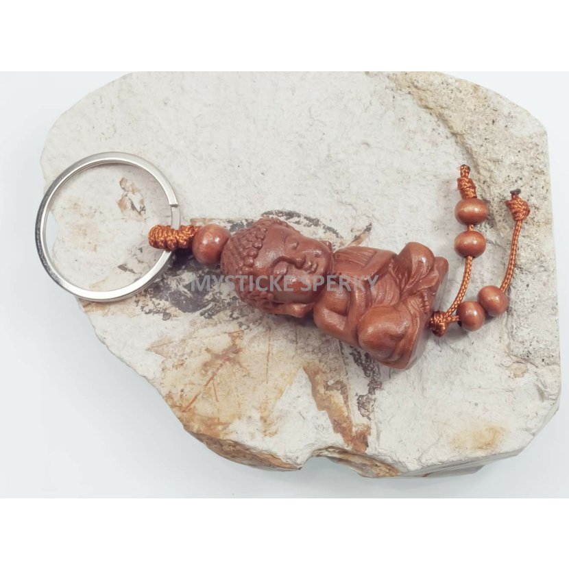 Dřevěná klíčenka s motivem Buddhy – mahagon, ruční práce