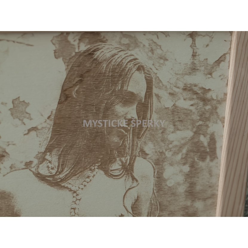 Základem obrazu je kvalitní topolová překližka, do které je motiv přenesen speciální technikou vícevrstvého laserového gravírování.
