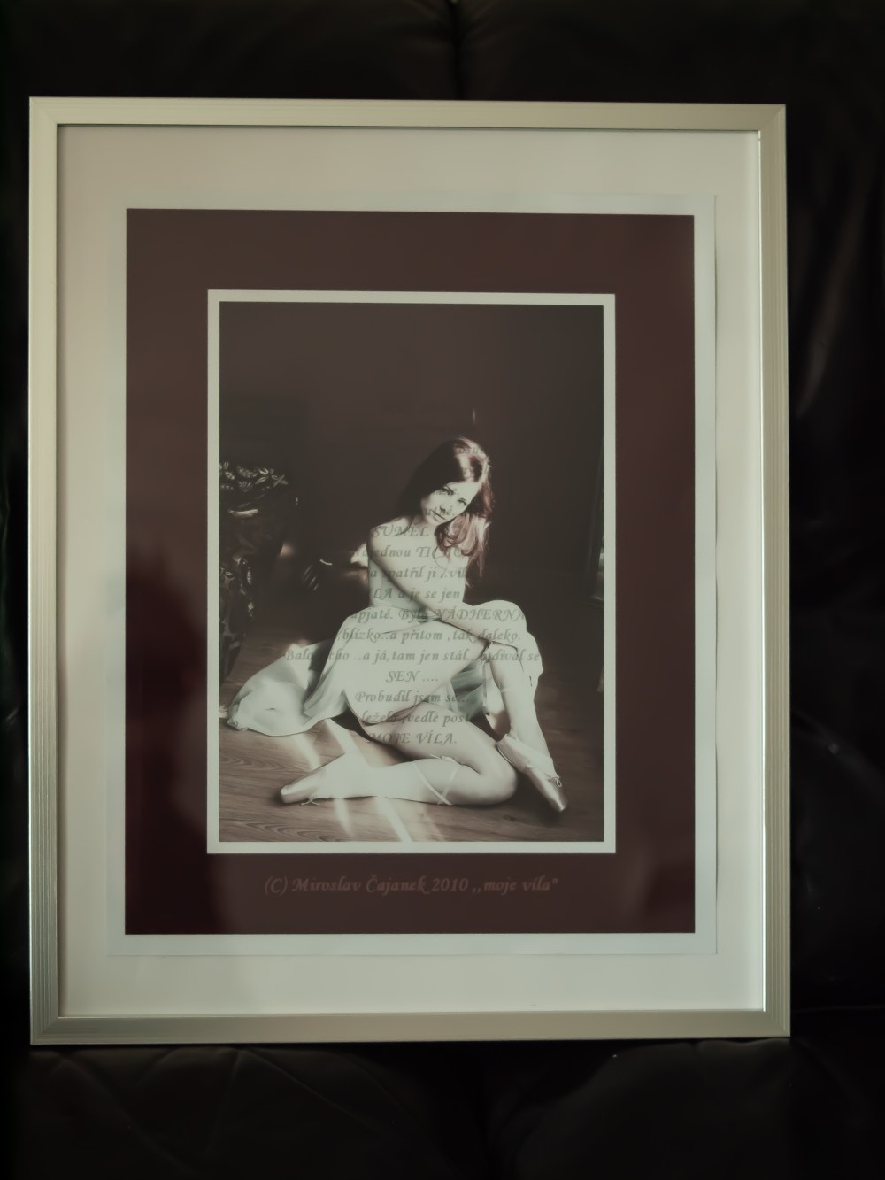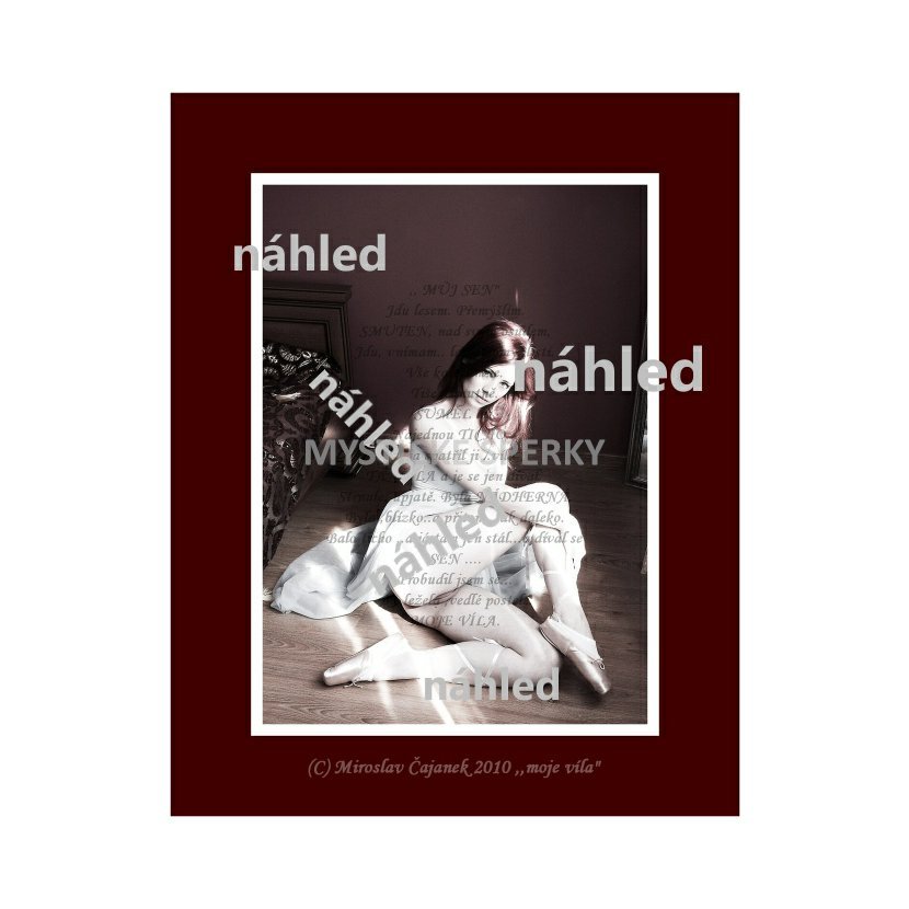 Objevte křehký svět baletu očima uznávaného fotografa Miroslava Čajánka. Tato autorská fotografie zachycuje dívku – baletku – v intimním momentu po skončení tance. Postava sedící v odpočinku vyzařuje jemnou únavu i hluboký vnitřní klid.