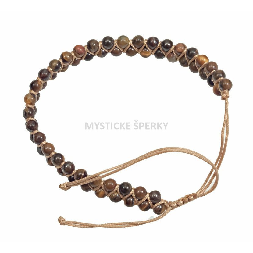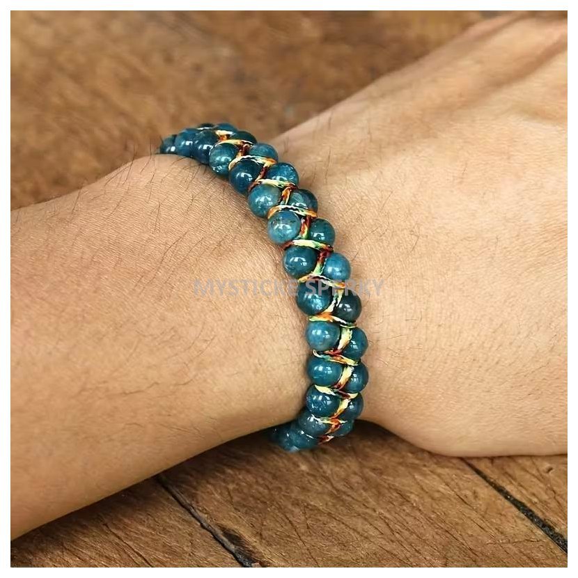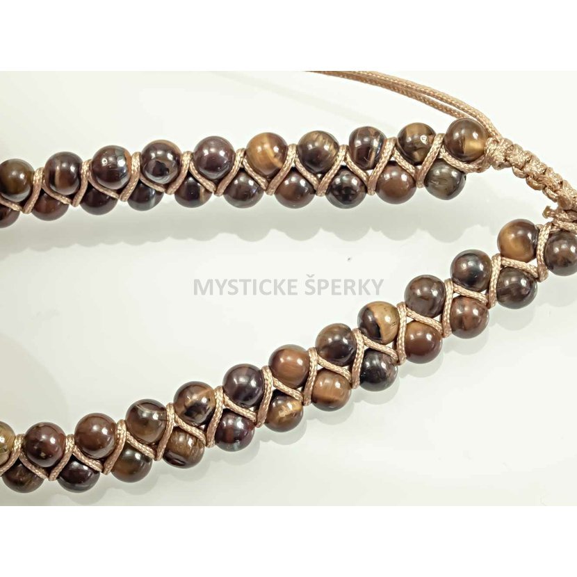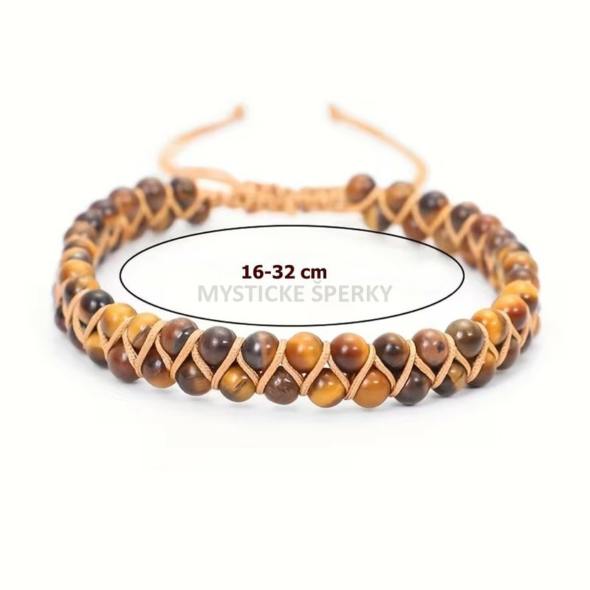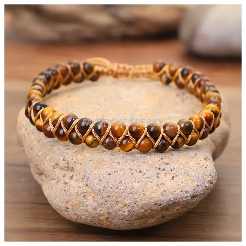 Elegantní ručně vyráběný kuličkový náramek z přírodních drahokamů apatitu a tygřího oka je navržen tak, aby spojoval estetiku, energii a praktičnost. Drobné hladké kuličky jsou ručně navléknuty na pevném bavlněném provázku, který je propleten do dvou paralelních řad, což náramku dodává zajímavou strukturu, stabilitu a originální vzhled.
