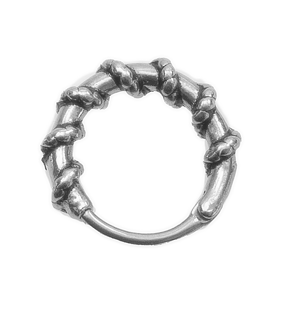 materiál chirurgická ocel. Dva rozvírací segmenty spojené čepem. Zdobené decentním reliéfem s efektem točené spirály.