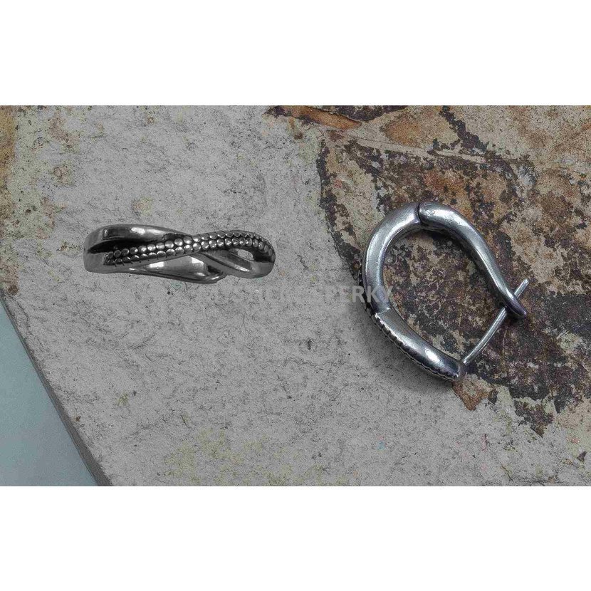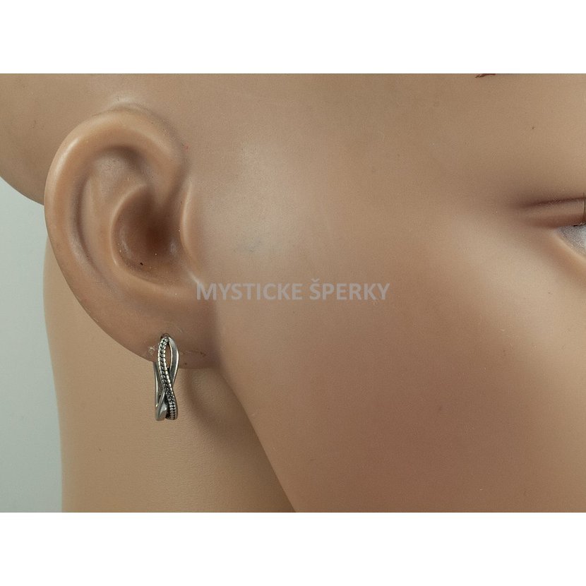 materiál chirurgická ocel. dva rozeviratelné segmenty spojené čepem. Ve stylu nekonečna / infinity