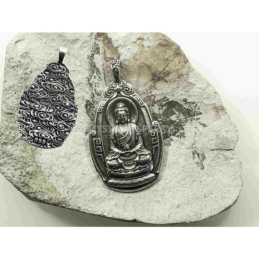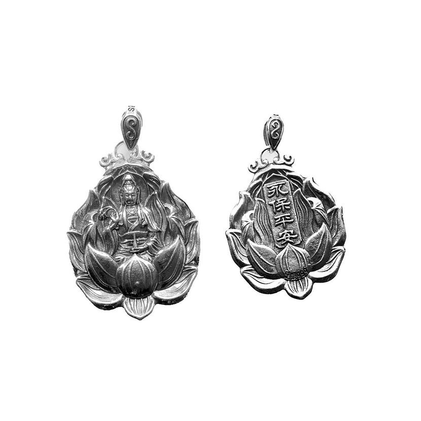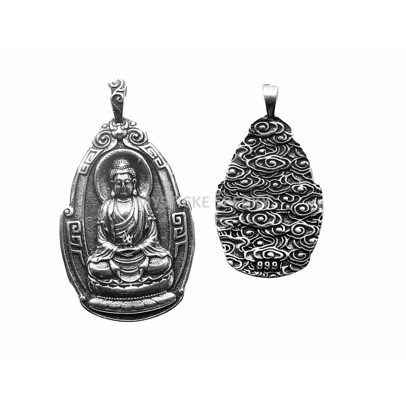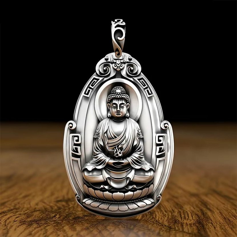Tento jedinečný přívěsek z nerezové oceli spojuje krásu tradičního mystického umění s hlubokým duchovním významem. Na přední straně je detailně vyobrazen motiv Buddhy nebo Guanyin Bodhisattvy, symbolizující moudrost, soucit a ochranu. Reliéfní zpracování podtrhuje precizní řemeslnou práci a nadčasovou eleganci šperku.