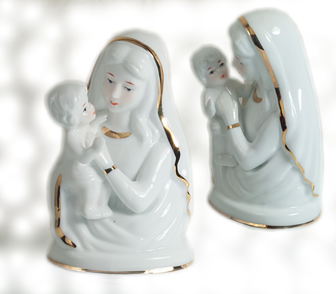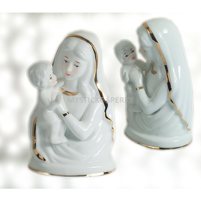 Tato exkluzivní porcelánová dekorace představuje Svatou Pannu Marii s děťátkem v elegantním a nadčasovém provedení. Každý kus je ručně zhotovený z bílého lesklého porcelánu a zdobené jemnou zlatou linkou , která podtrhuje posvátný charakter této sochy.