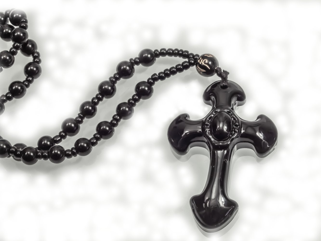 Každý gotický kříž je pečlivě vytesán z jednoho kusu černého obsidiánu a vyleštěn do vysokého lesku, který odráží světlo s fascinující hloubkou. Tato mistrovská ruční práce zajišťuje, že každý přívěsek je naprosto originální a jedinečný.