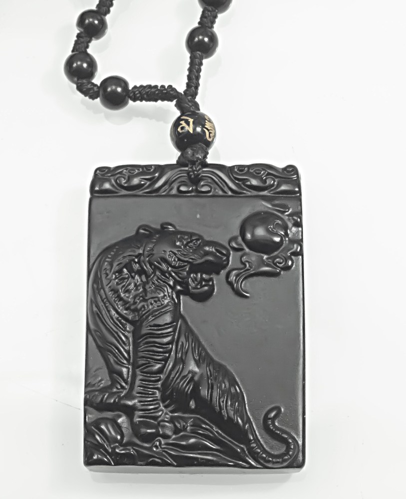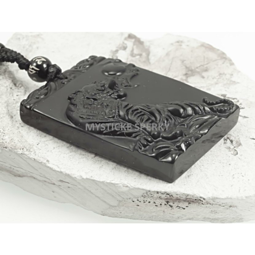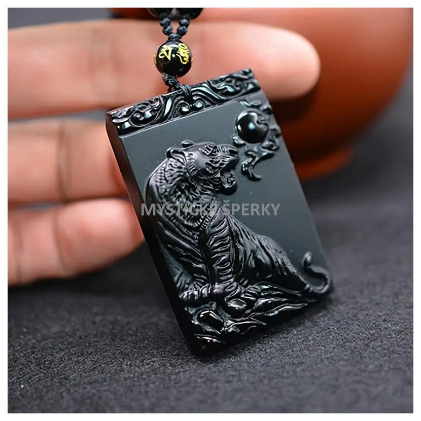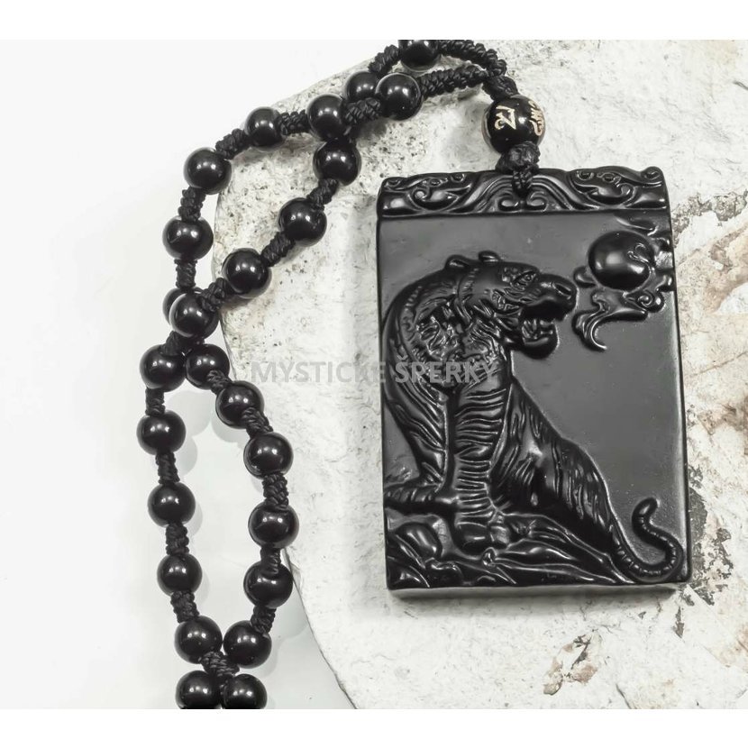 Tento jedinečný šperk je vyroben z přírodního obsidiánu ve tvaru destičky, která je zdobena detailním reliéfním motivem tygra – pradávného symbolu odvahy, síly a ochrany. Tygr je od nepaměti vnímán jako strážce životní energie a symbol nezkrotné divokosti, který dodává nositeli odvahu čelit překážkám a stát pevně ve své vlastní síle.