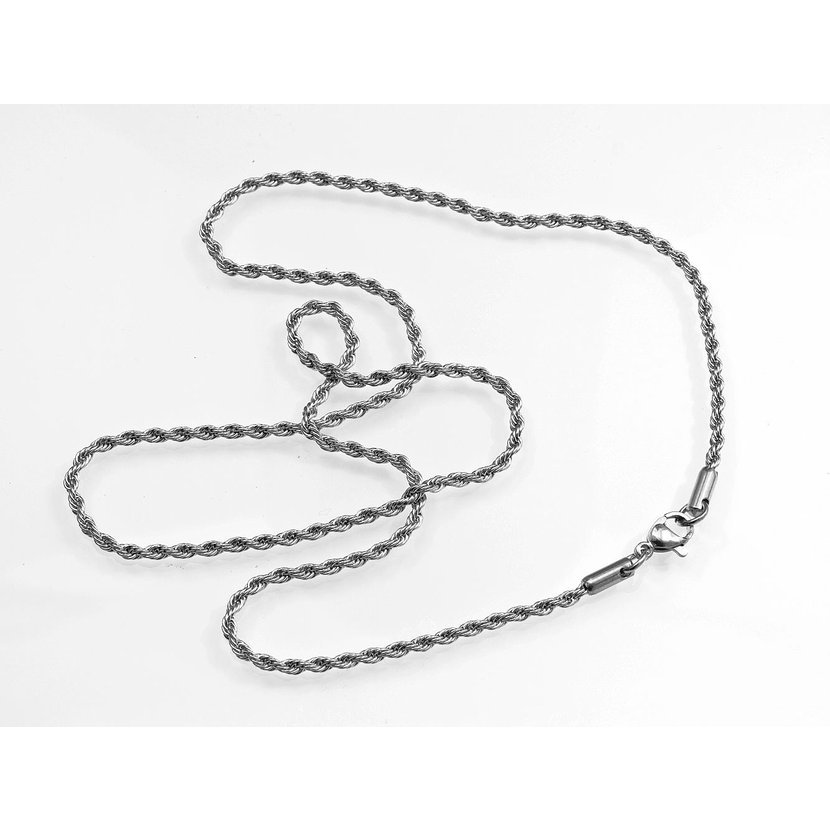 Tenký řetízek z chirurgické oceli pletený vzor. Povrch šperku je v leštěné chromové úpravě. Zapínání je na klasickou karabinku. Menší varianta na lehké přívěsky