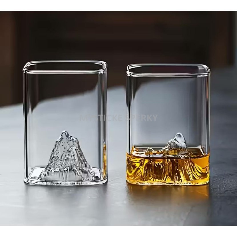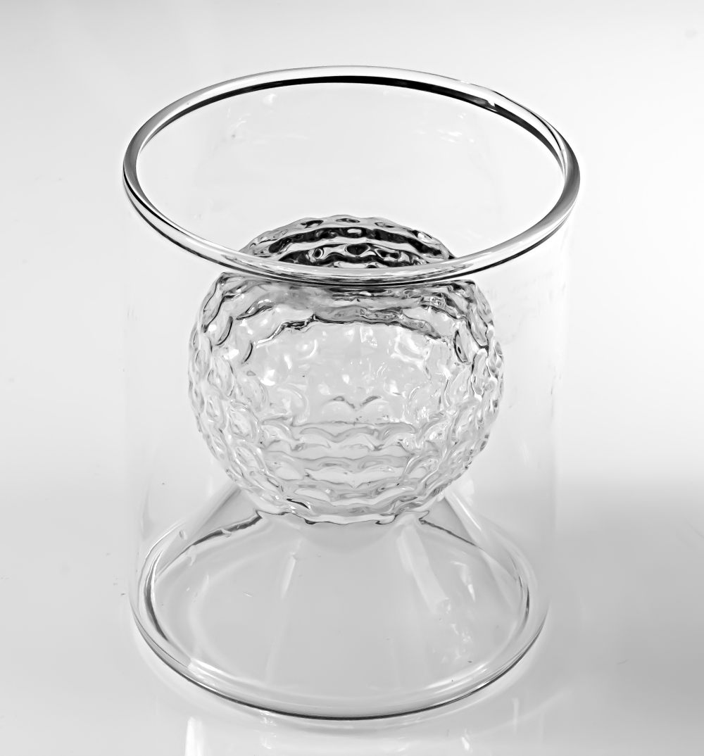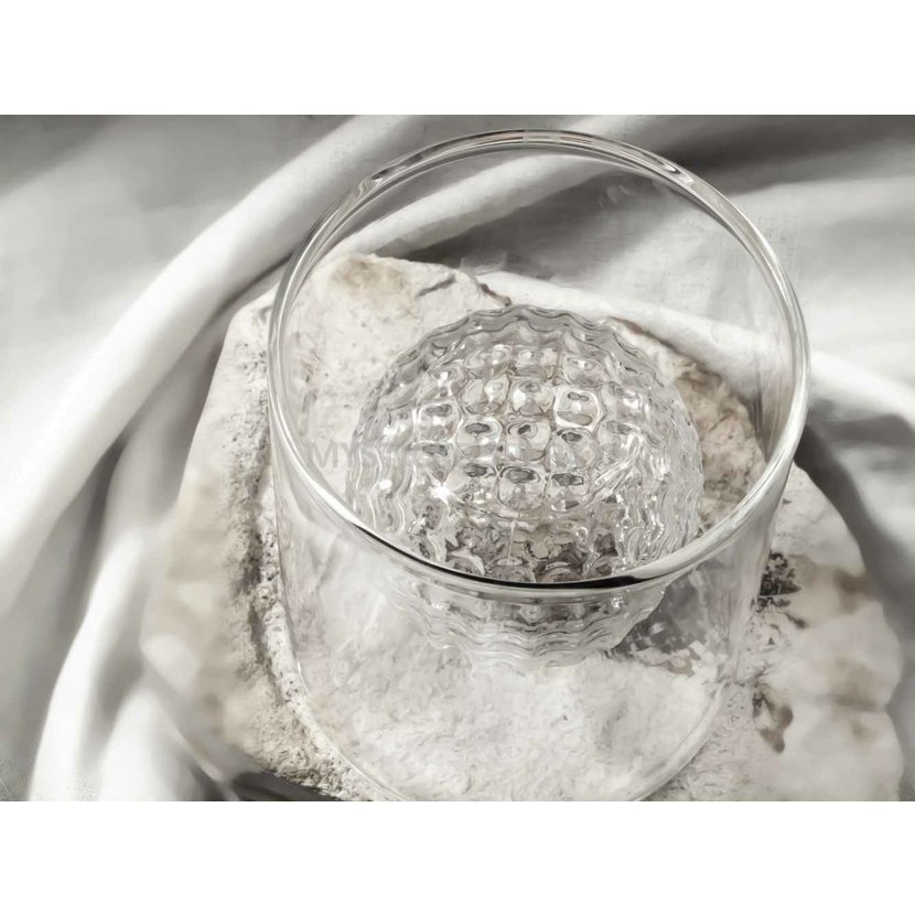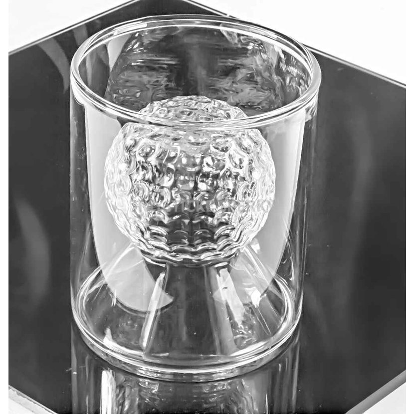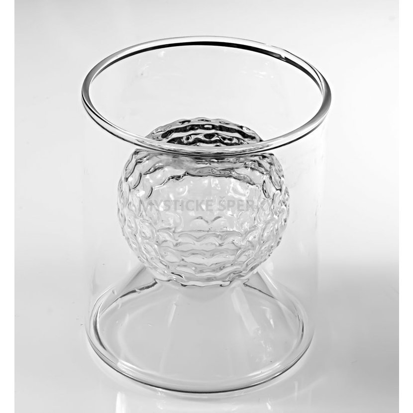 Originální sklenice na panáky zaujme na první pohled svým jedinečným designem. Díky dvojitému sklu vzniká efekt vnitřního motivu, který evokuje golfový míček a zároveň jemné obrysy horské krajiny. Každý doušek tak doprovází vizuální zážitek, který ocení milovníci whisky, slivovice i designových doplňků.