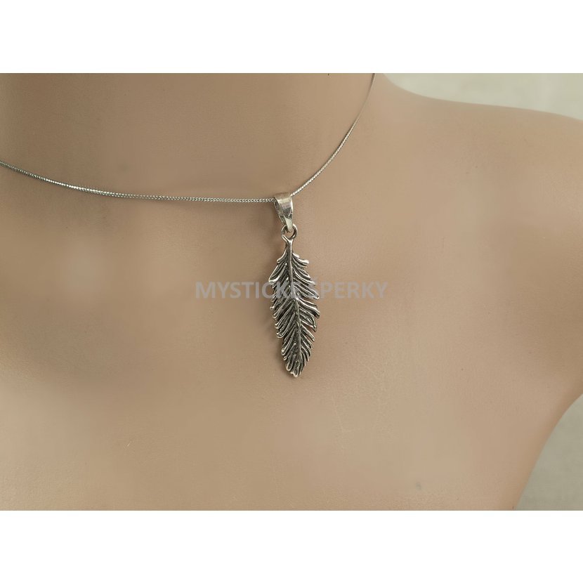 Přívěsek ptačí pírko je elegantní a stylový šperk, zhotovený z drahého kovu, stříbra ryzosti 925/1000. V naturalistickém provedení.