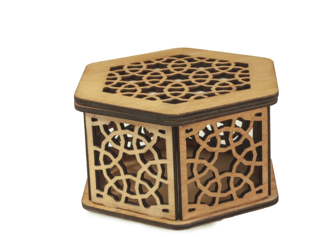 Design krabičky, kruhové prvky. Na fotografii je povrchová úprava mořením  ,,světlý dub" Rozměr 10x10x065 cm.