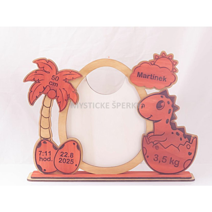 Dřevěný personalizovaný Foto rámeček k příležitosti narození miminka. Ústřední motiv Žirafa. Materiál přírodní topolová překližka. . Motivy a text hloubkově vygravírovaný Laserem. Vložení fotografie do zadní části, oválný výřez. Barevnost lze změnit dle vašeho požadavku .Potřebná data napište do poznámky v objednávce.