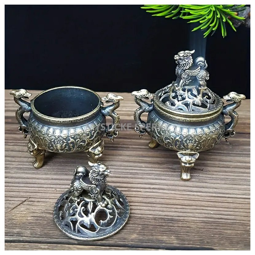 Kovové vykuřovadlo s mytologickým symbolem Okřídleného Lva. Známého také jako Griffin. Povrchová úprava patinovaný bronz. Odnímatelné víčko.